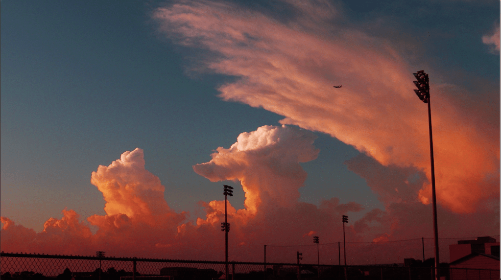 A still from Methodology of Clouds (2021). The film is an experiment with B-roll aesthetics. Time-lapse of clouds, captured over weeks, shows passage of time.