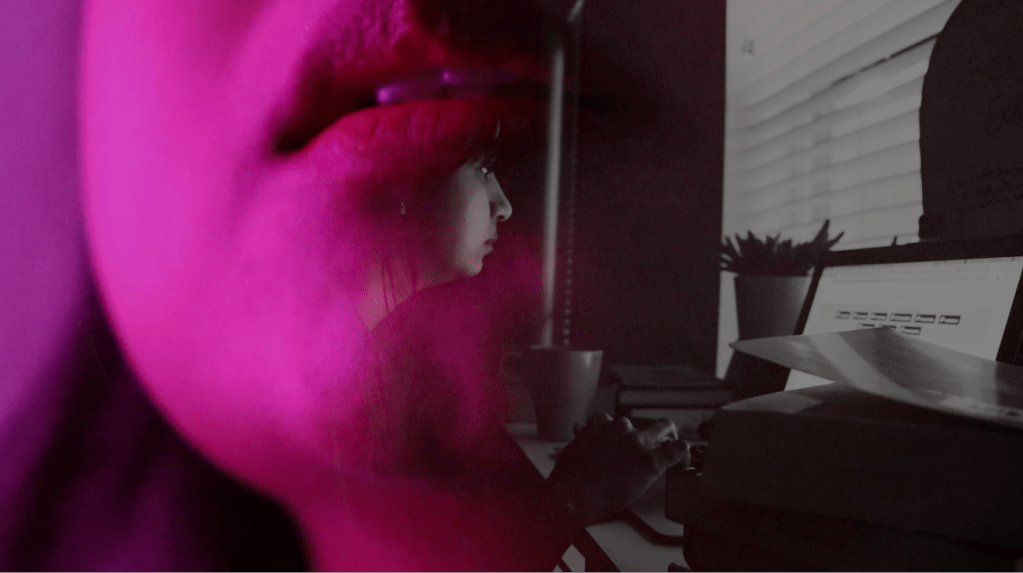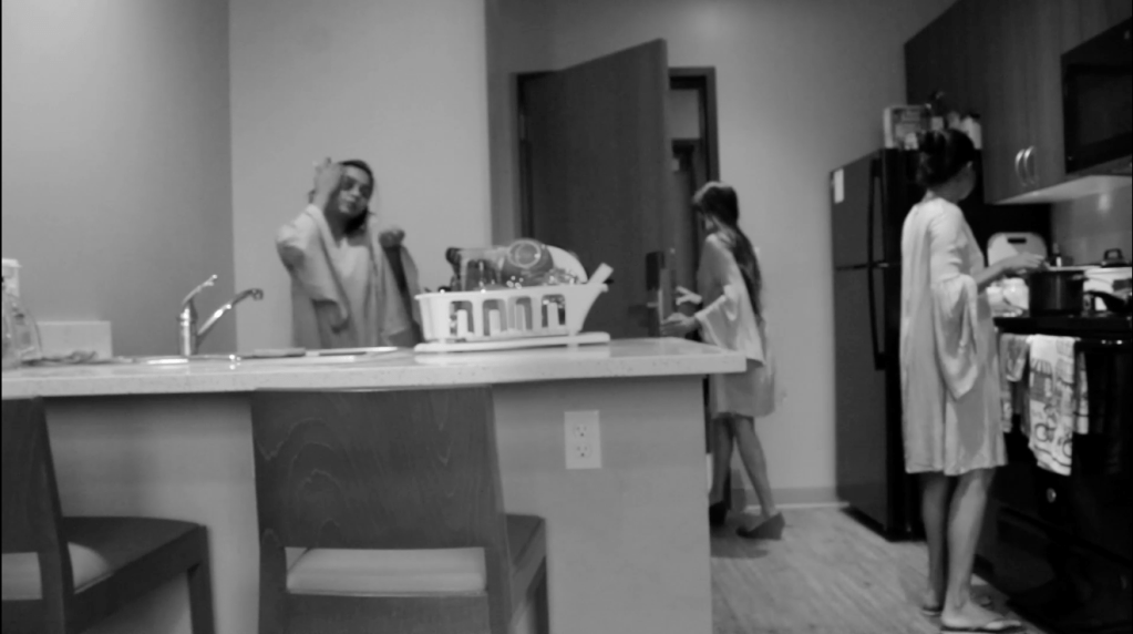A still from Unknown (2023). Unknown is an experimental film that explicitly deals with the topic of gun violence in the U.S., mediated via the snippets of a friendly conversation between a newly immigrated international graduate student (The Grad Student) and the filmmaker. However, the film is not interested in the heated debates over possession of guns and instead, it lays bare the deep-seated human conditions of alienation, anxiety, fear, and vulnerability resulting from the threat to existence in a new social, cultural, and political environment. Through a highly contrasted, desaturated color palette and ominous soundtrack, the film slowly brings the primal fear of death to life.